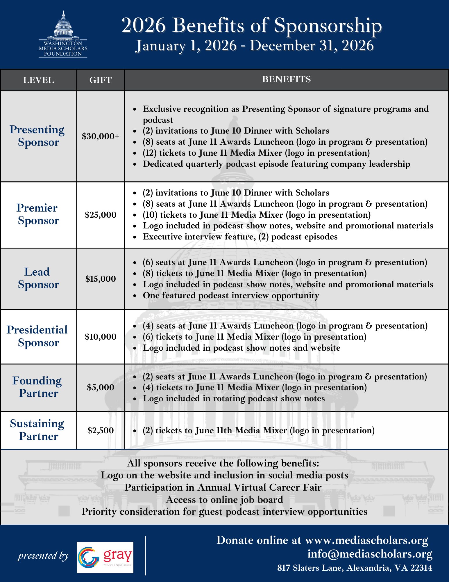 Sign up for special special announcements and the latest news on the Washington Media Scholars Foundation